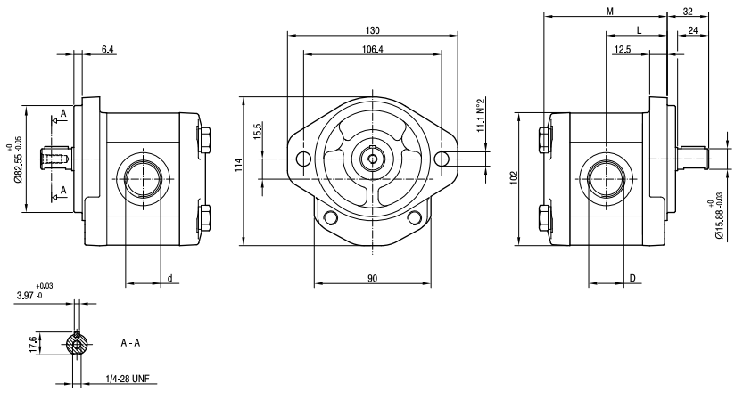 | GHP2-D-37 | 25.5 | 36.4 | 210 | 225 | 240 | 2800 | 62 | 125 | 19 | 19 | M8 | 40 |
