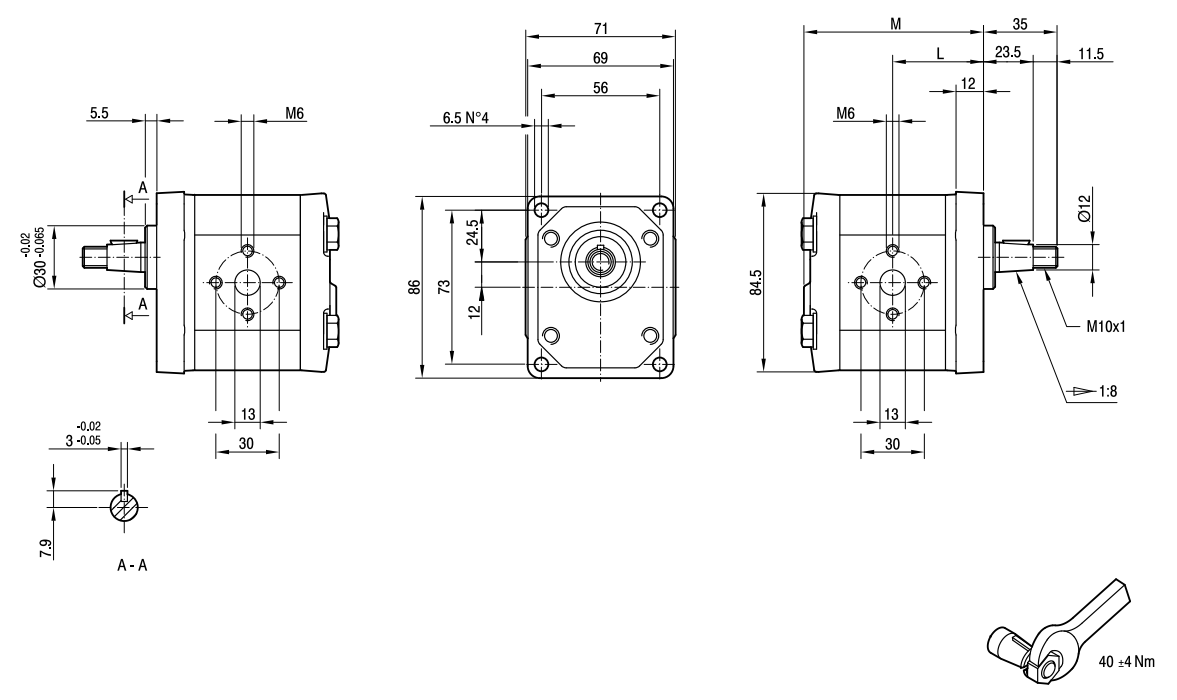 - Displacement: The marzocchi GHP1 oil gear pump series includes pumps with different displacements, typically ranging from 4.5 cc/rev to 13.9 cc/rev. This displacement determines the volume of hydraulic fluid the pump can deliver per revolution.